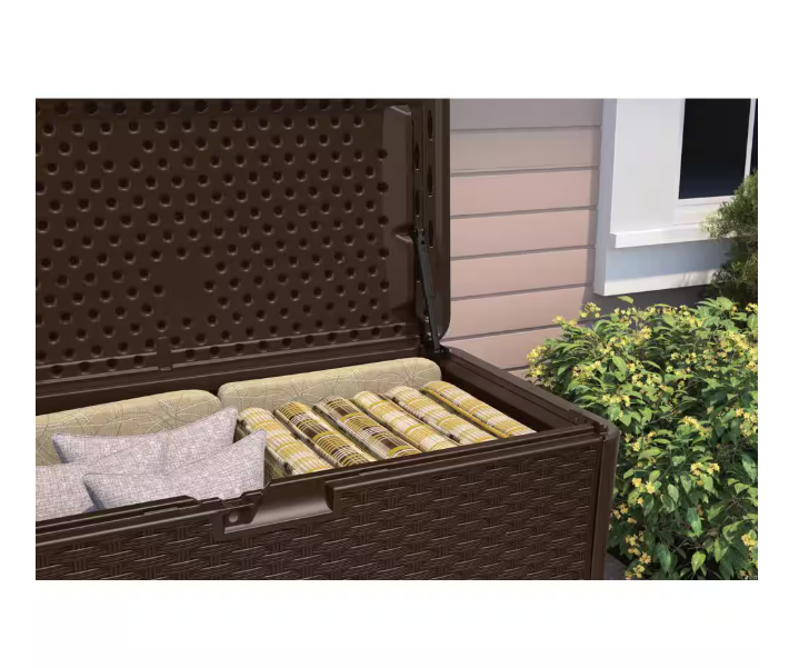 Add more than just storage to your space. The Suncast Extra-Large Deck Box looks great in any environment, bringing fresh style to your outdoor entertaining area. It offers plenty of room with a capacity of 134 gallons, extra seating, and durable, multi-wall resin construction that will look great for years to come. The weather-resistant design makes it ideal for keeping your furniture cushions, gardening gear, and other outdoor accessories clean and dry. This Extra-Large Deck Box covers a lot of bases!