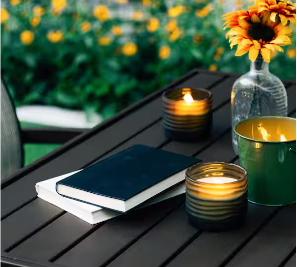 - Natural flame provides light and ambience