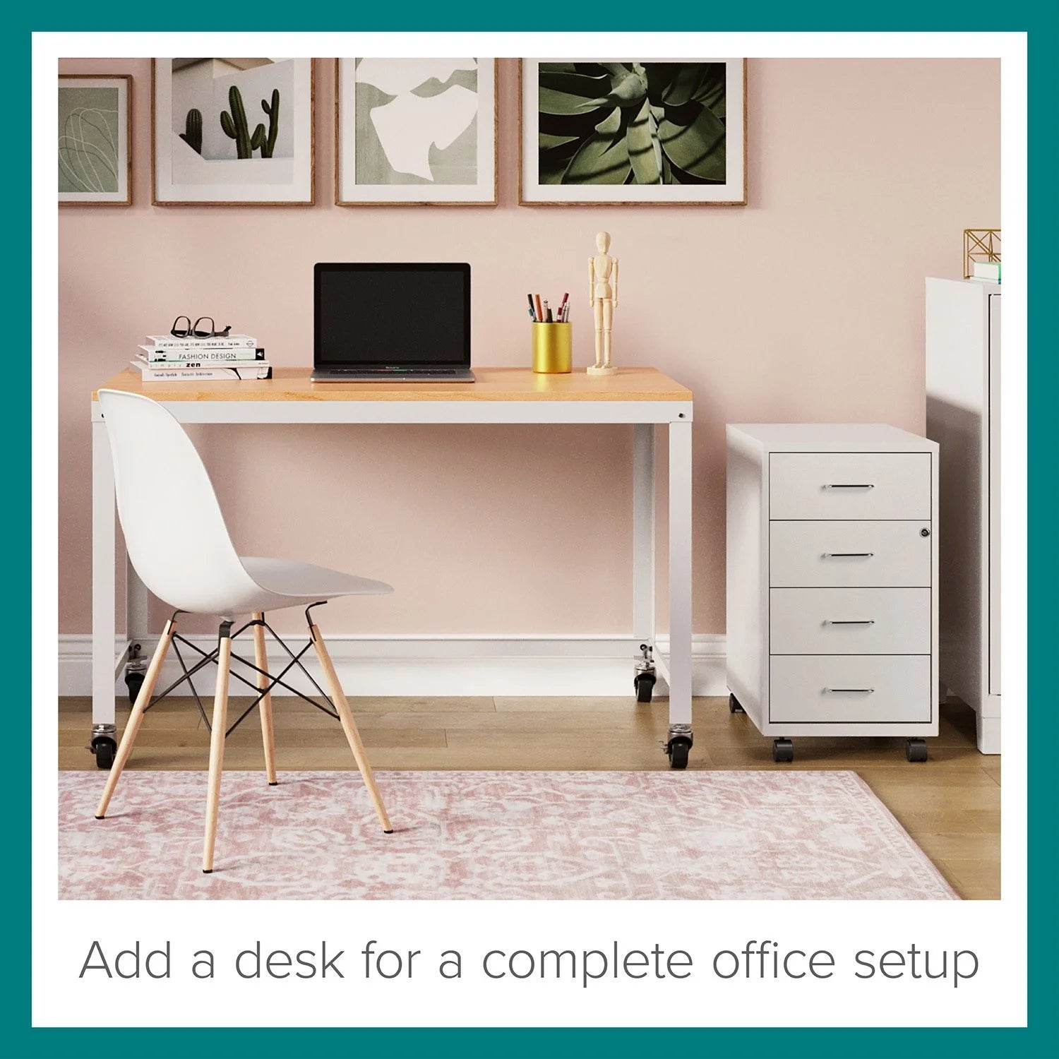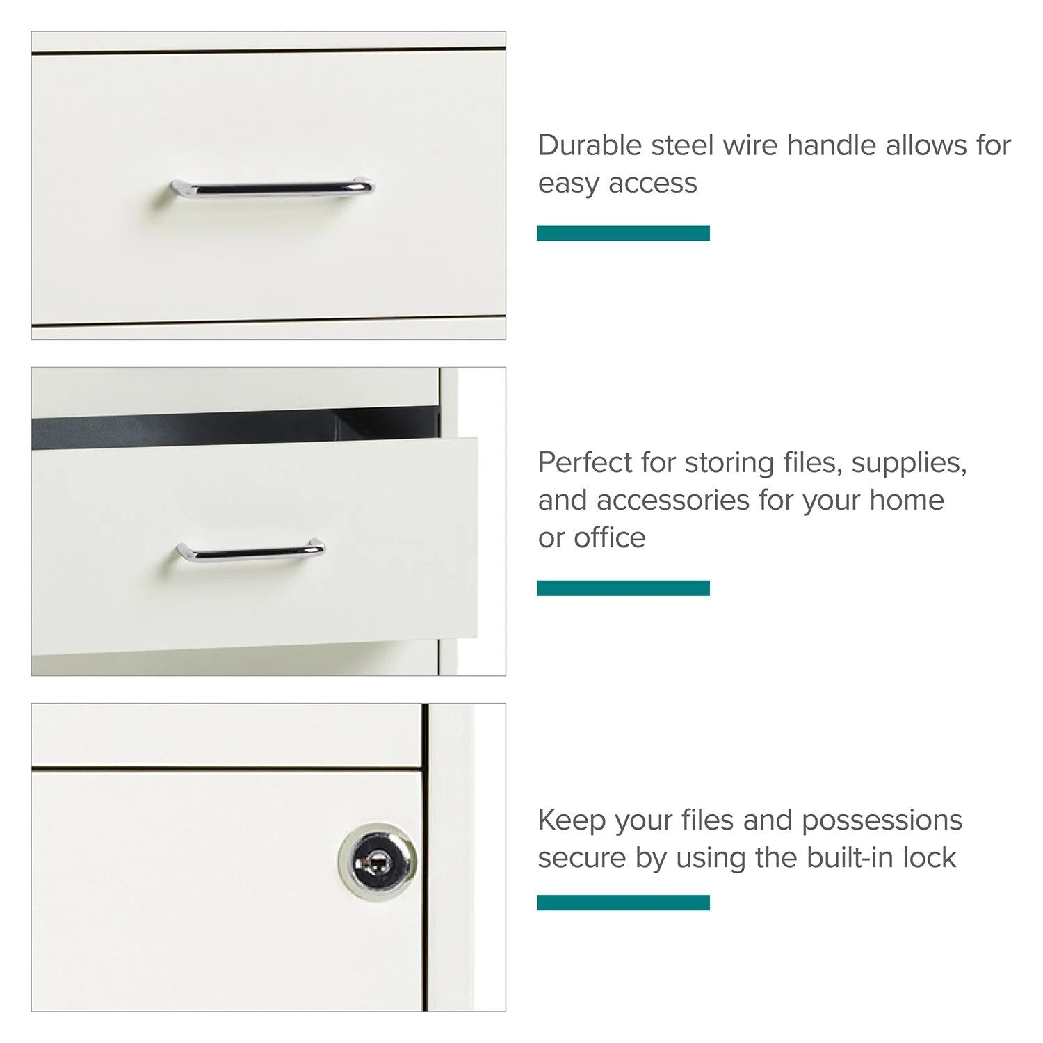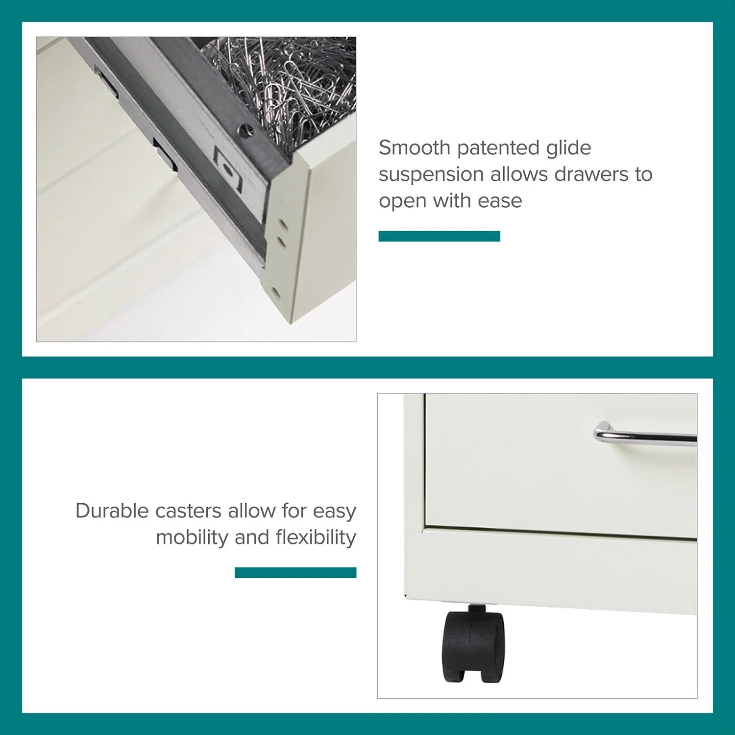 The 18" Deep 4-Drawer Metal Mobile Organizer offers a refined solution for efficient storage in compact office or home settings. Crafted from durable painted steel, its four utility box drawers glide smoothly on patented suspension systems, ensuring easy access with three-quarter extension. The top two drawers secure contents with a built-in cam lock, providing peace of mind. Its non-porous surface simplifies cleaning, blending functionality with sleek design to keep your workspace orderly and elegant.