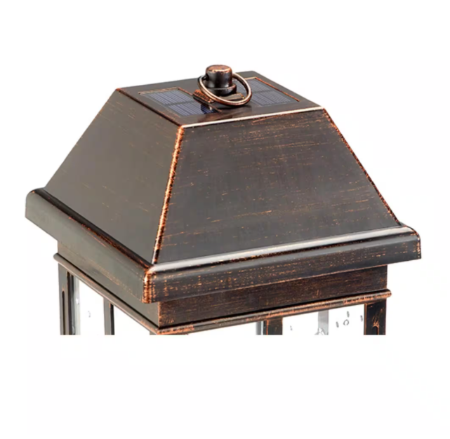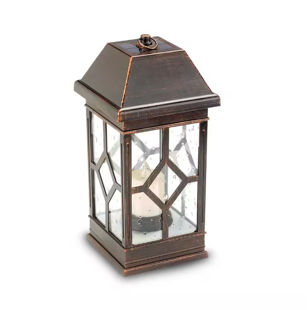 The Smart Solar San Felipe Solar Lantern is great for hours of maintenance free light and ambiance at the campground, on the patio or on the porch. This lantern has a classic appearance with diamond-paned windows and an attractive bronze finish. Constructed of all weather poly plastic with durable plastic windows. Inside, one LED bulb is located in the roof of the lantern and an LED pillar candle offer plenty of illumination. ON/OFF switch allows you to control the light. Light automatically comes on in low-light conditions when switch is set to 'on' position. Solar charged batteries power the piece, operating for up to 8 hours on a full charge.