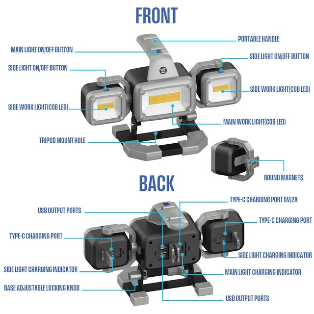 - Two detachable magnetic side lights