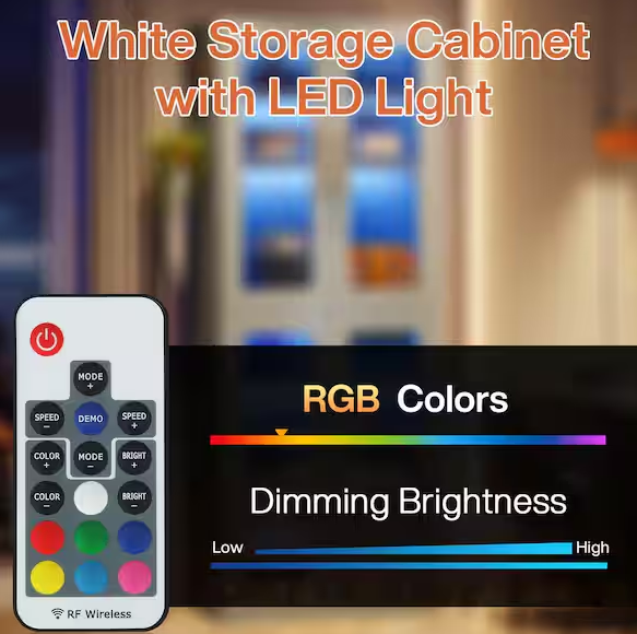 24.8 in. W Display Cabinet with Doors and LED Lights