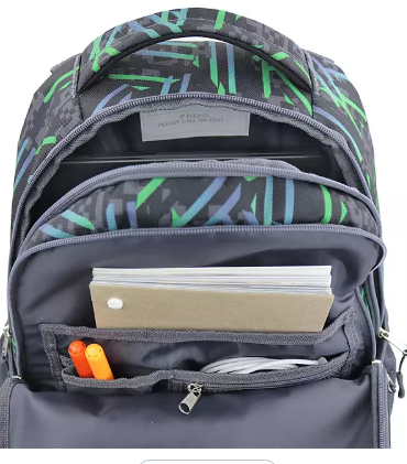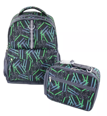 2 piece youth backpack set covers all your child’s needs for when its time to go back to school. This fun and stylish 2-Piece Back to School set includes a large multi compartment backpack and a matching insulated lunch kit that has plenty of storage room. The backpack features a large main opening for your laptop, tablet, or books. With reflective safety accents, you will be visible in lower light situations. A sewn in name tag helps you find and identify your backpack and matching lunch kit. A buckle closure handle on the lunch kit allows you to easily attach to your backpack for easy transportation. Carry with comfort with a cushioned back pad and adjustable shoulder straps. The multiple interior storage compartments are great for smaller accessories like pens, pencils, and markers. The dual side pockets are the perfect place to store that water bottle or larger accessories. This fun and stylish set also features a matching insulated lunch kit that is the perfect size for both a lunch and a beverage. The lunch kit handle features a buckle closure that allows you to hang the lunch kit on the backpack when not being used. Also included is a writable sewn in name tag, similar to the backpack, that will allow you to easily identify your lunch bag. The Members Mark Back-to-School backpack sets lunch kit includes an interior mesh storage pocket that is the perfect size for adding for ice packs. The matching lunch kit is made with a PEVA lining that helps keep your food and beverages at the perfect temperature and a top carry handle lets you carry easily. Pick up one of the two stylish options today, available in Rainbow and Geo print. The Members Mark 2-piece youth backpack set's dimensions are: 16.9" x 12.2" x 6"