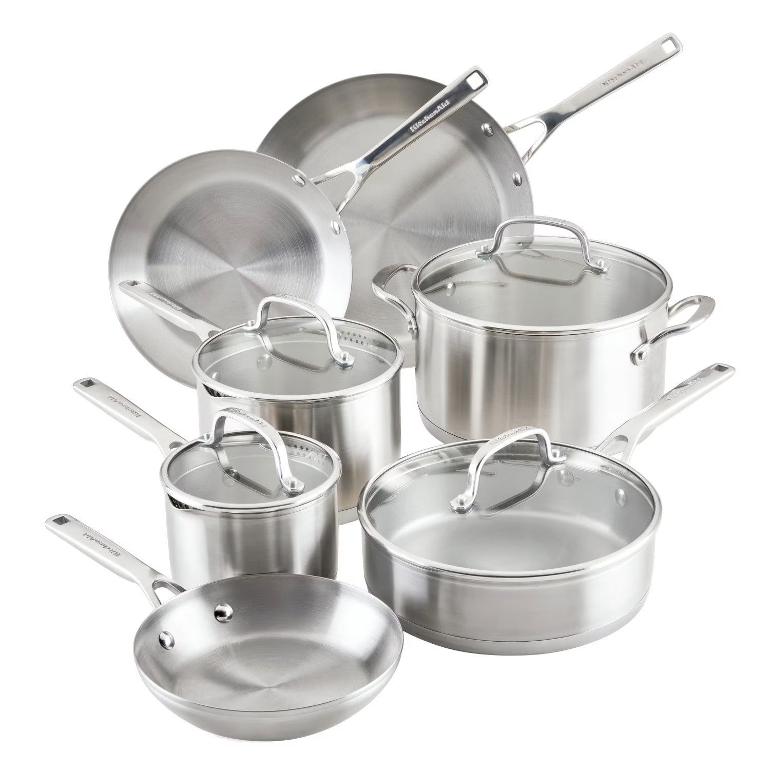 3 Ply Base Stainless Steel 11 Piece Cookware Set, Brushed Stainless Steel