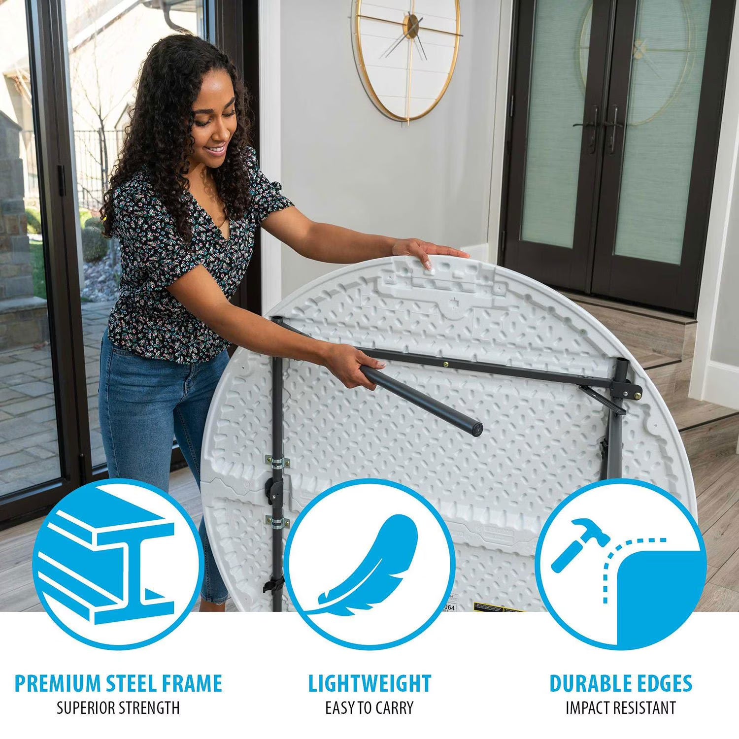 48" Fold-in-Half Round Commercial Grade Table, White Granite
