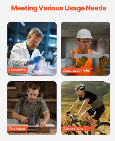 These professional-grade safety goggles deliver reliable eye protection across diverse work environments. Engineered with polycarbonate construction meeting ANSI Z87.1+ standards, they withstand impact from liquids, dust, and debris while resisting scratches and cracks. The advanced lens coating eliminates fogging in fluctuating temperatures, maintaining crystal-clear visibility throughout your workday. A wraparound design shields eyes from front and side splashes, blocking 99% of harmful UV rays. Adjustable arms and a cushioned nose bridge ensure a secure, comfortable fit for extended wear without slipping. Weighing just 0.051 lbs, these goggles suit laboratory technicians, construction workers, outdoor enthusiasts, and craftspeople seeking dependable eye safety without compromise.