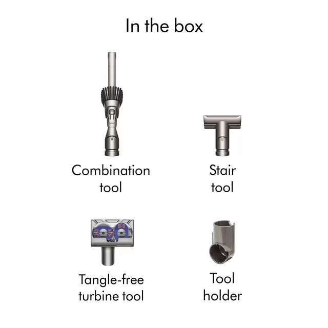 - Tangle-free turbine tool removes pet hair from upholstery and cars