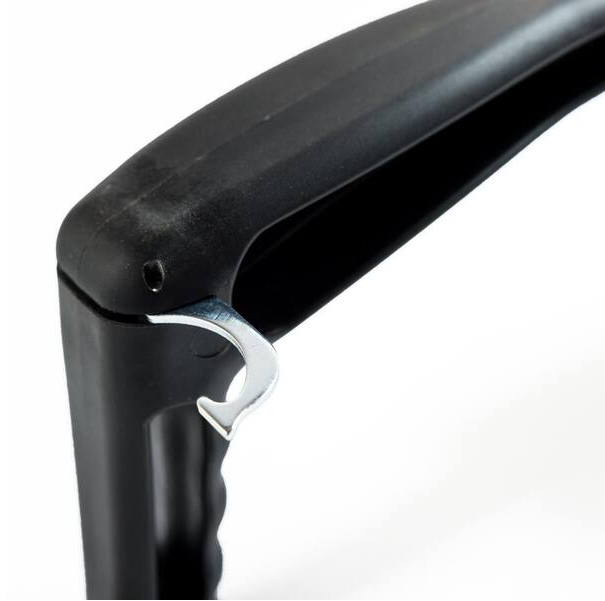 - Retractable hook lifts grill grates and can be used for hanging storage