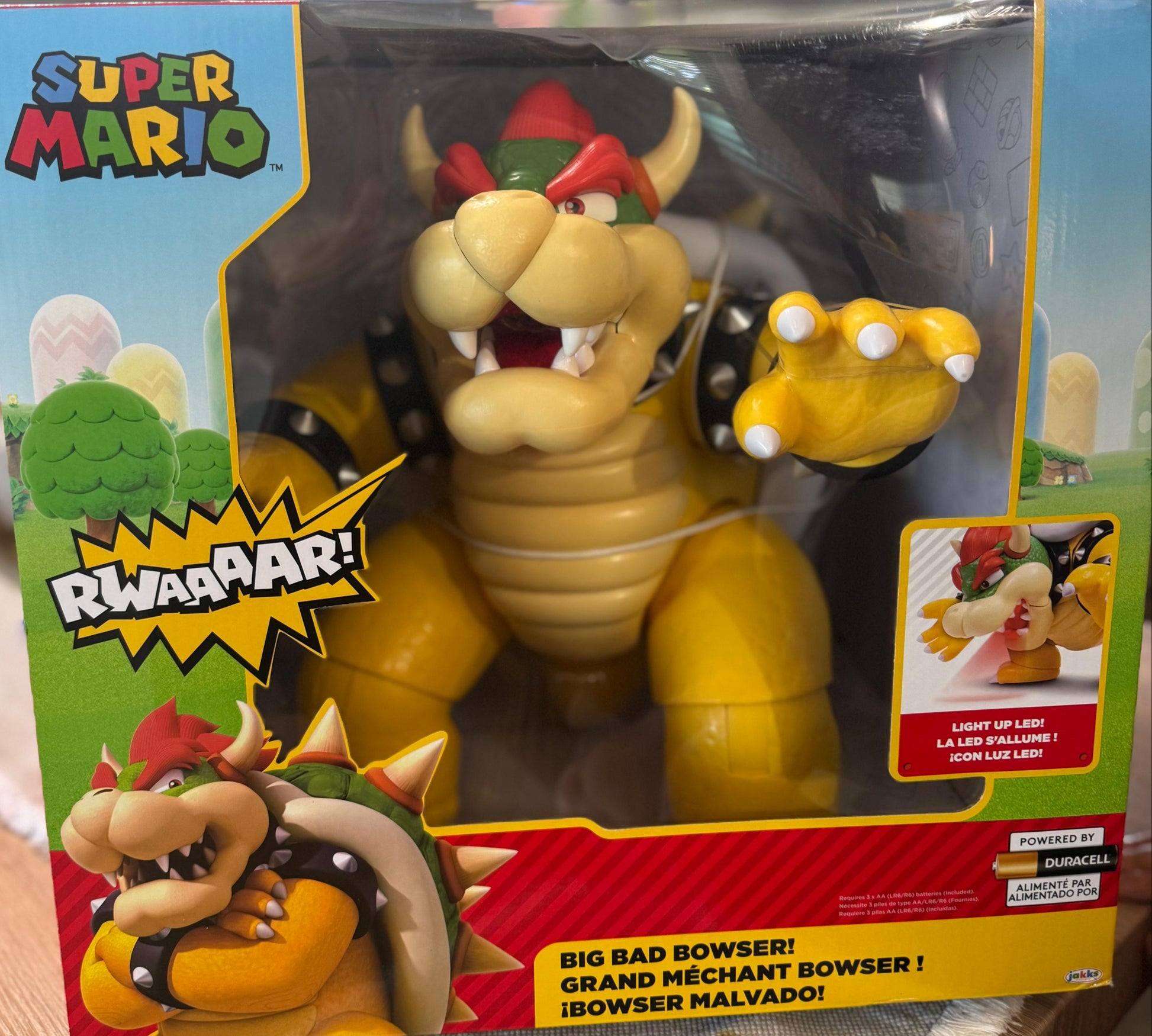 Fresh as new! Jakks Pacific's enormous action figure of Big Bad Bowser from Super Mario has the following features: