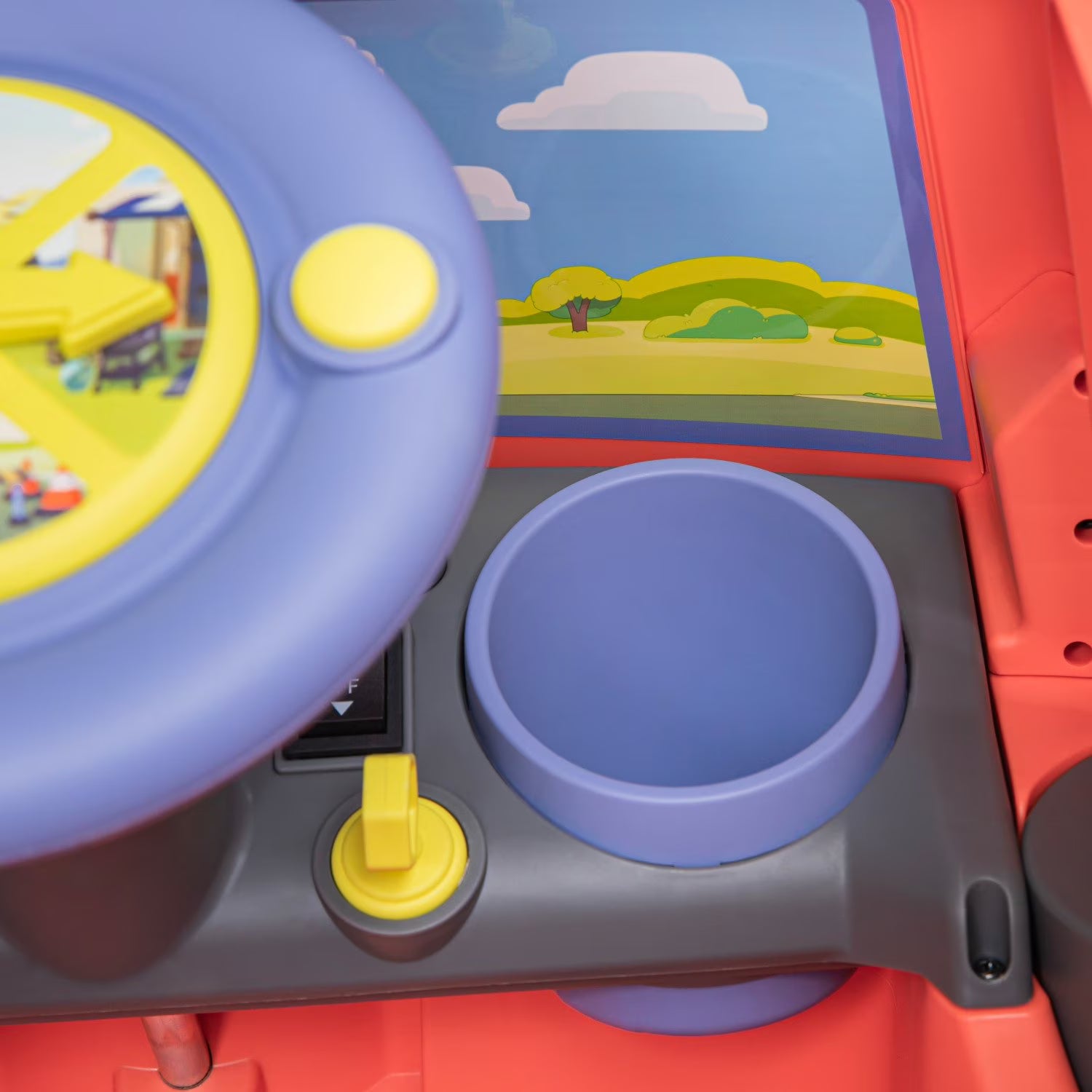 - Authentic Bluey Design: Modeled after the Heeler family vehicle for a fun and immersive ride, with outer windshield and windows feature character graphics, while the inside showcases Bluey world artwork for full immersion