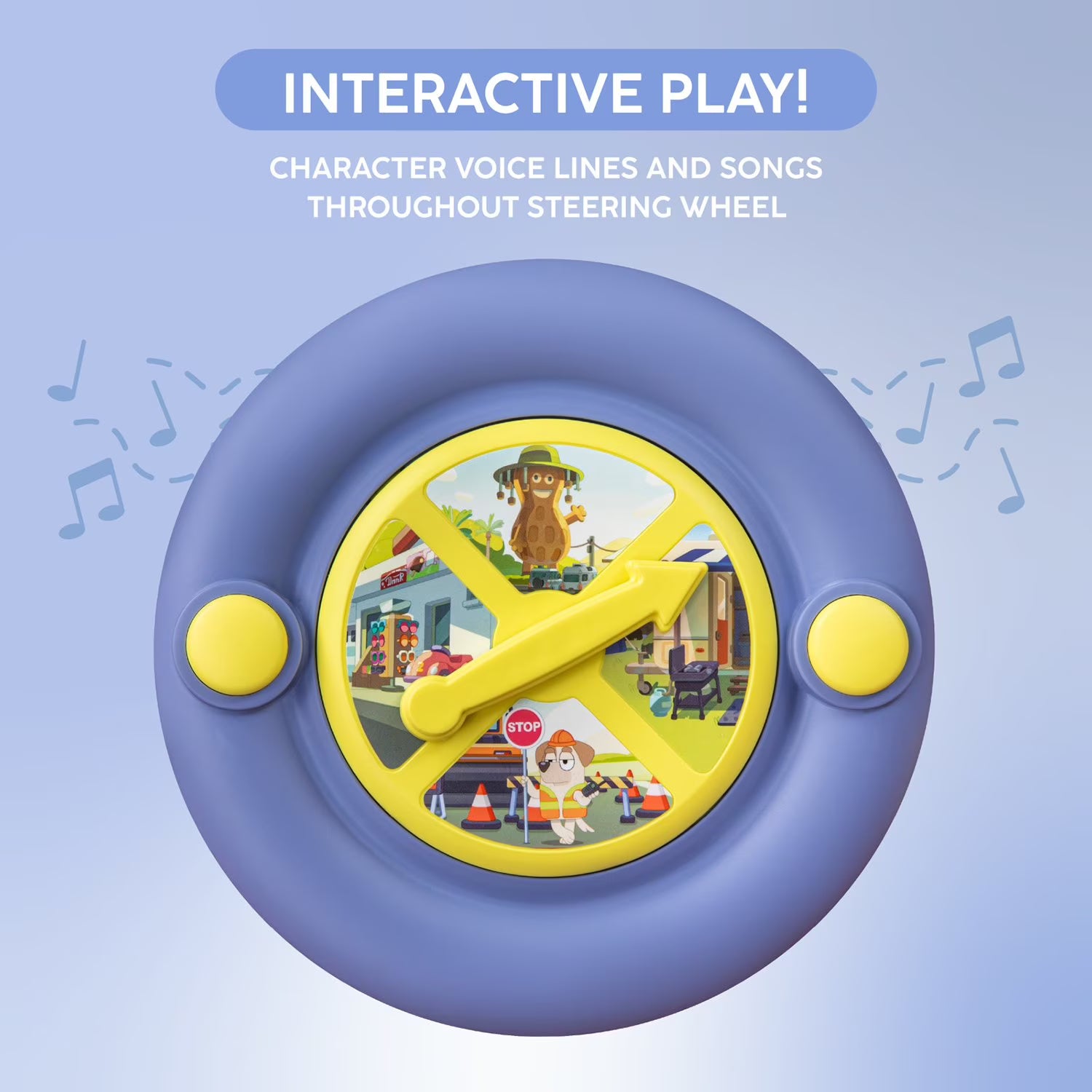 - Interactive Steering Wheel: Features a destination spinner, show phrases, and songs for endless entertainment