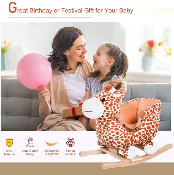 - Smooth rocking runners let your child feel like they are actually riding a galloping giraffe without the danger of actual riding security belt included