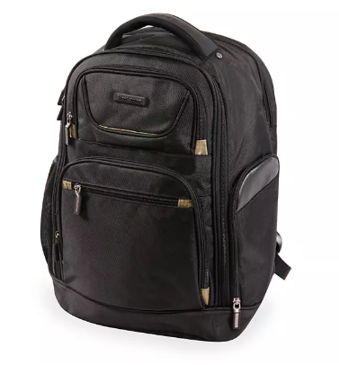 Head off to work or school with your laptop and other must-haves packed safely and stylishly inside this durable Hayes Laptop Backpack by Brookstone. The Brookstone Hayes 18" Business Laptop Backpack features a spacious main compartment, an RFID pocket, and a luggage trolley back sleeve for easy transportation. A laptop compartment, tablet pocket, and multiple zippered pockets for accessories help keep you organized while on the go. This bag features bartak sewing at all stress points for long-lasting durability, as well as a deluxe interior organizer, multiple side pockets, and a padded air-mesh back panel.