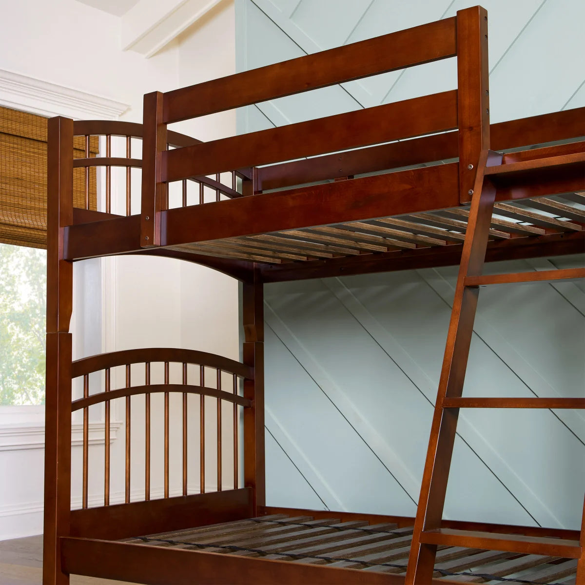 The McKenzie Collection is designed with contemporary flair and versatility in mind. The set features double arched styling cues with open and round spindled headboards for timeless appeal. The robust hardwood Beech construction on the bed and case pieces ensures a lifetime of beautiful and practical enjoyment and time-honored craftsmanship ensures truly heirloom quality. The McKenzie bunk bed can also be separated into side-by-side twin beds if desired.