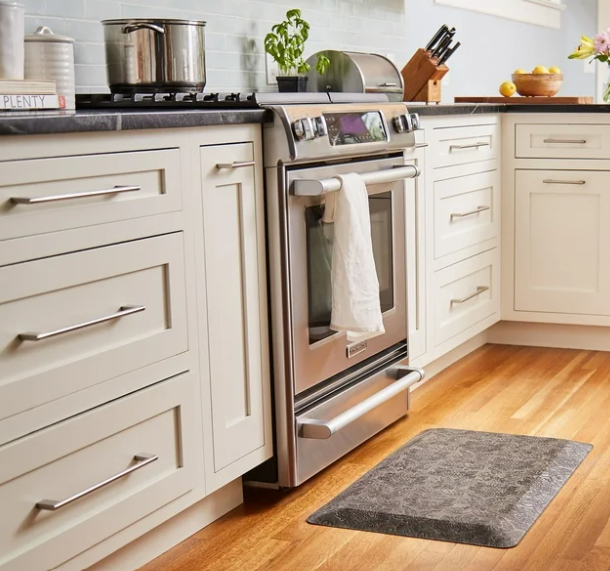 This anti-fatigue kitchen mat has a durable surface that resists water and a nonskid back that ensures stability on most surfaces. Place this mat in your kitchen and cook meals in comfort and stability.