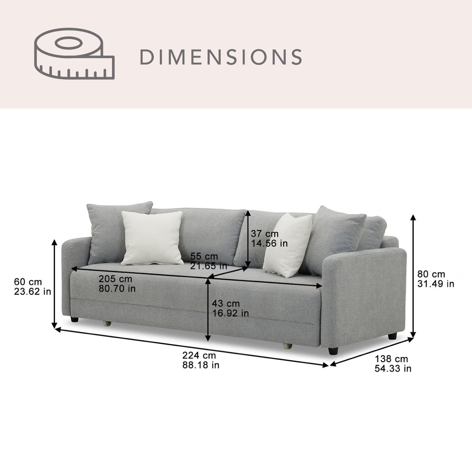 Convertible “Sit & Sleep” Sofa, Gray
