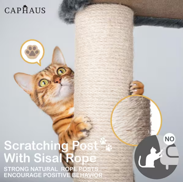 This multi-level cat tower combines robust engineering with feline comfort. Built from reinforced P2 particleboard with sturdy support posts and a stabilized base, it safely accommodates up to 2 large or 4 medium cats. The generously padded 17.7" x 11.8" top perch and plush faux fur covering create an inviting retreat for rest and relaxation. The staircase-like design accommodates cats of all ages, while wear-resistant sisal scratching posts, a functional ramp, and interactive hanging toys encourage natural climbing, scratching, and play behaviors. At 19" W x 19" D x 37" H, this dark grey tower fits seamlessly into modern interiors while providing essential enrichment and exercise. An ideal solution for indoor cats seeking both physical activity and cozy lounging spaces.