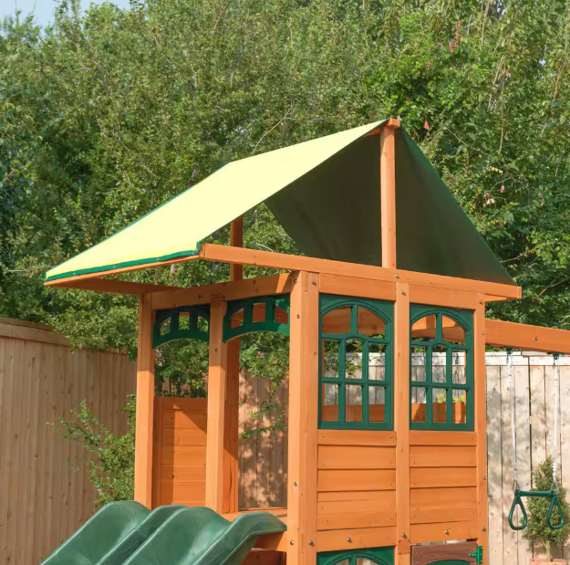 - 2-level clubhouse with windows and working door; canopy roof for added shade