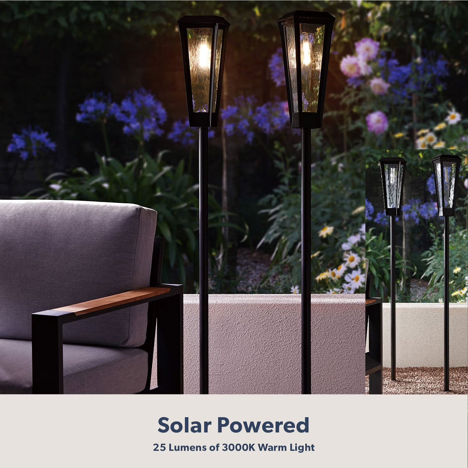 - Set of 2 dusk to dawn solar-powered post lamps