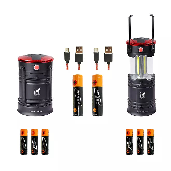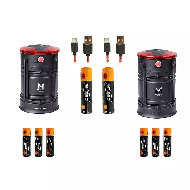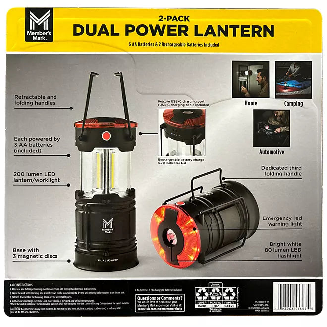 - 2-Pack Dual Power Lantern with built-in Flashlight and Red Warning LED.