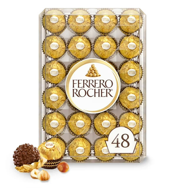 - 48 indulgent Ferrero Rocher chocolates presented in a gift box