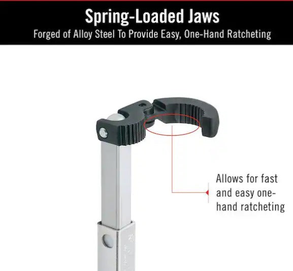 - Spring-loaded tough forged alloy steel jaws allow for speedy ratcheting using just 1 hand for convenience and ease of labor