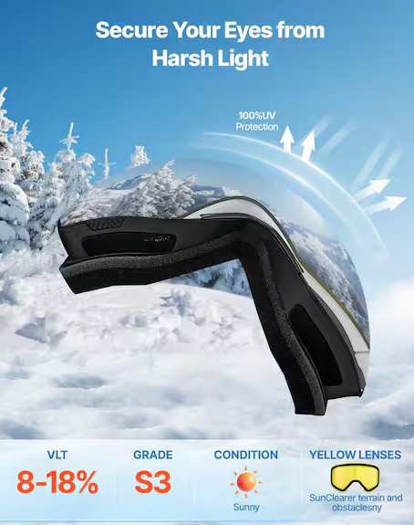 Experience superior visibility and comfort on every run with these frameless silver mirror snow goggles engineered for serious riders. The advanced anti-fog dual-layer lens technology maintains crystal-clear vision through temperature fluctuations, while triple-layer foam padding delivers warmth and stability. The OTG (Over-The-Glasses) frame accommodates most eyewear up to 4.7" x 2.3" without compromising fit or peripheral vision. A reinforced, non-slip helmet-compatible strap ensures the goggles stay securely positioned during aggressive descents. The innovative dual-magnet lens system enables quick, tool-free lens swaps while maintaining a locked grip at high speeds. With a full white mercury lens (VLT 8-18%) optimized for bright conditions, these goggles deliver the performance and adaptability demanding skiers and snowboarders require.
