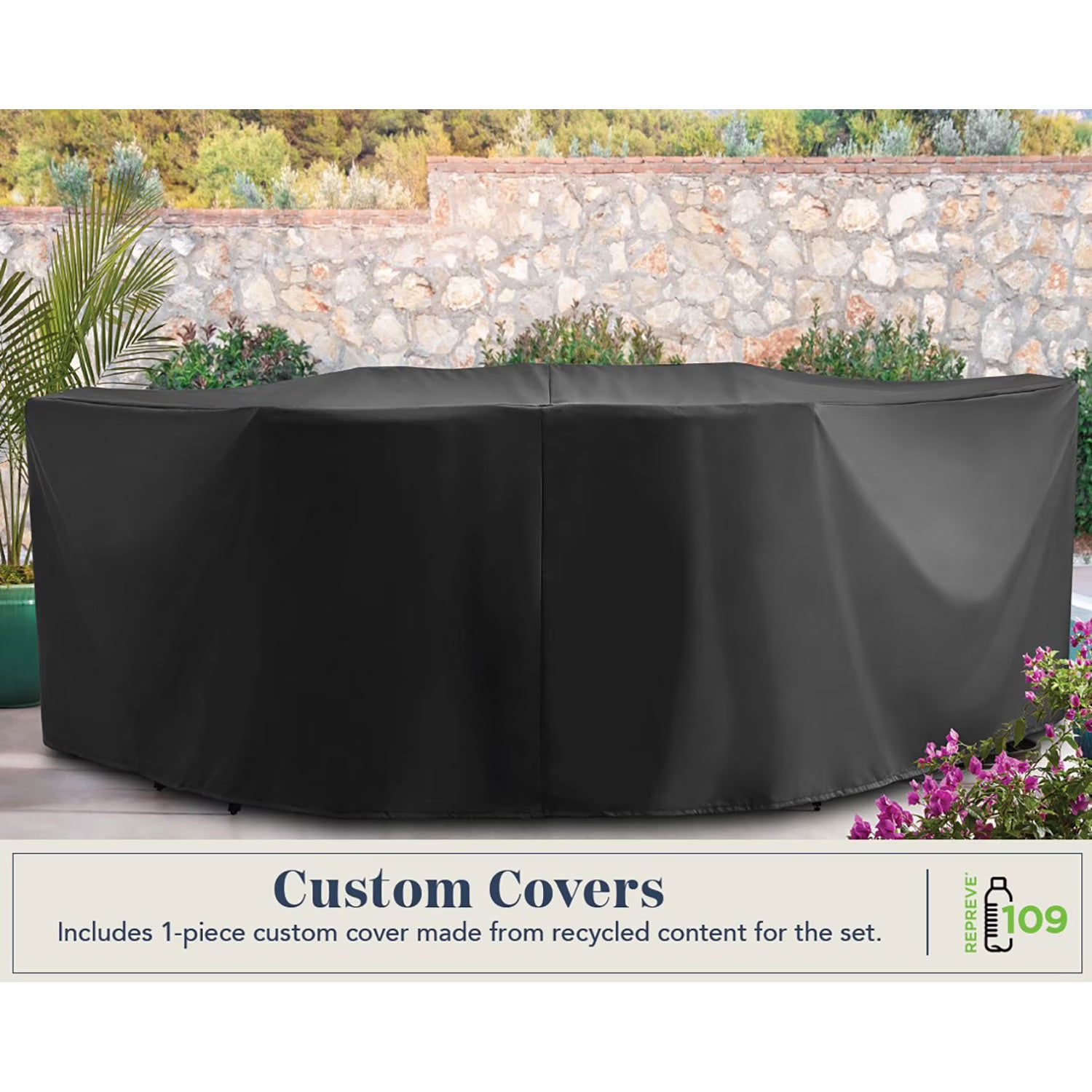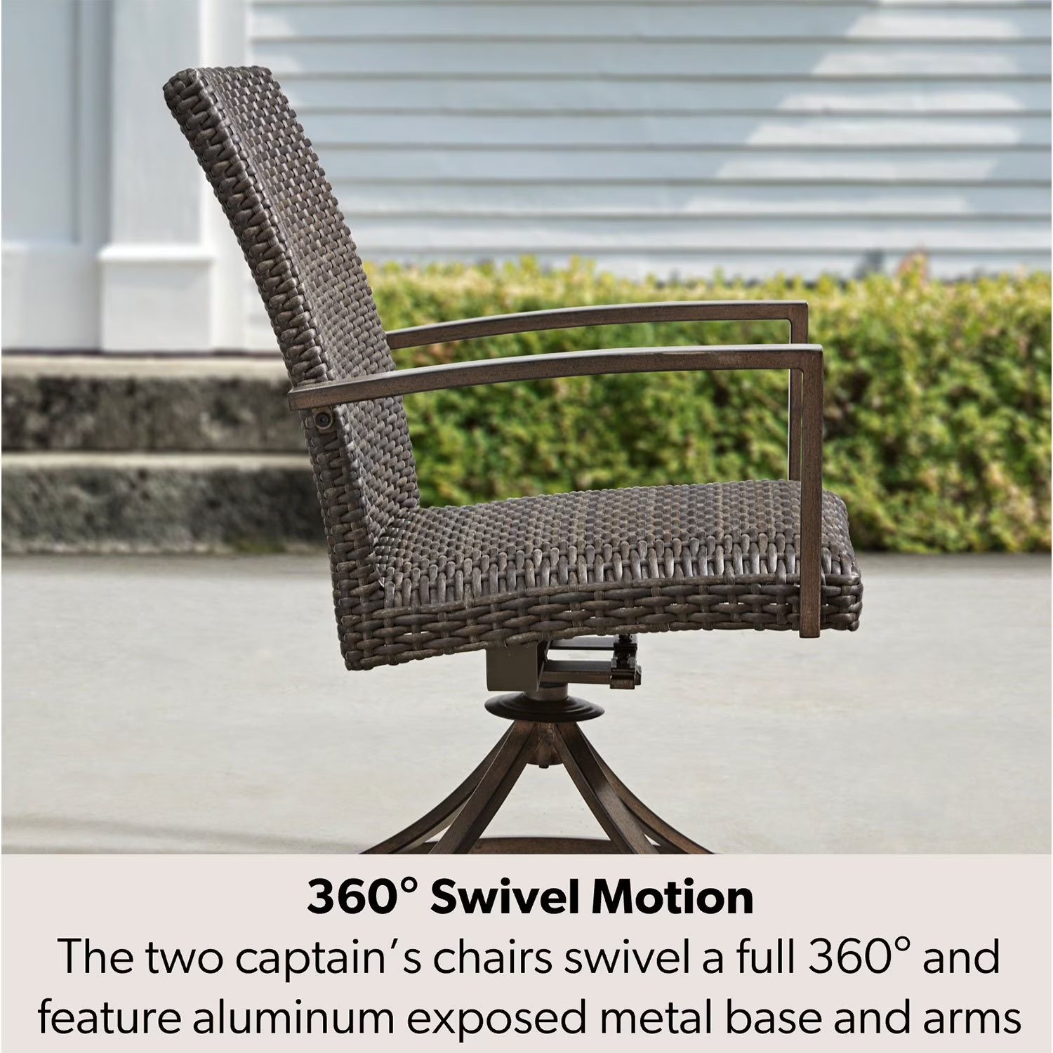 - Set includes: 2 swivel rockers, 6 stationary chairs, 1 extension table and cover, seats 8