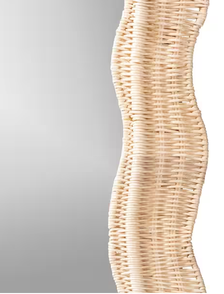 - Constructed from natural rattan, mirrored glass, and engineered wood