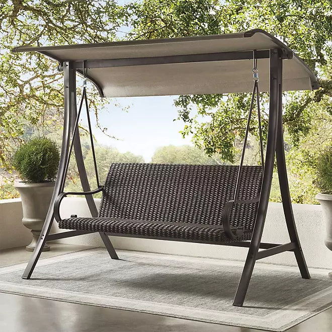 Enjoy the outdoors with the Homewood 3-Person Wicker Swing. Expertly crafted and handwoven, this swing is made with all-weather wicker, ensuring long-lasting quality and resistance to color fading. Perfect for a relaxing afternoon or a fun gathering, this swing is a must-have addition to your outdoor space.