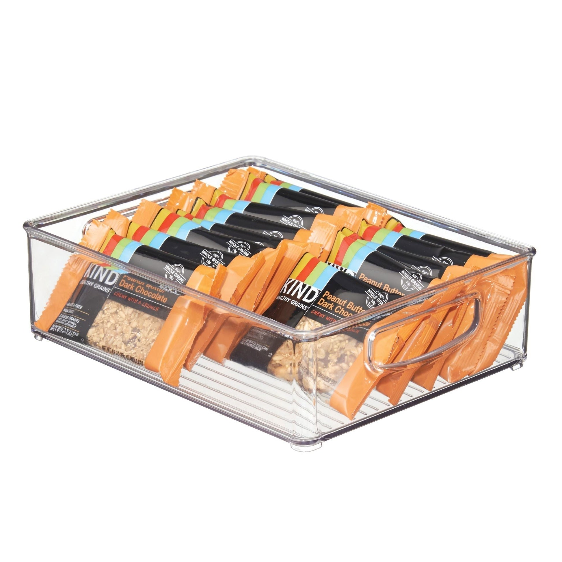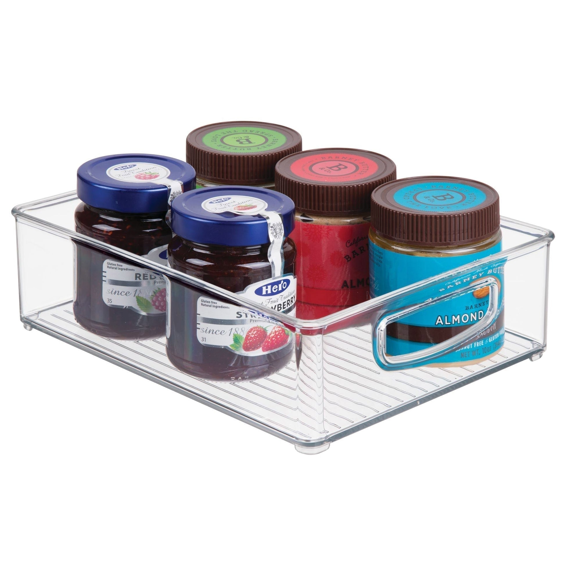 - Durable bin for storing packets, pouches, jars, cans, bottles and more