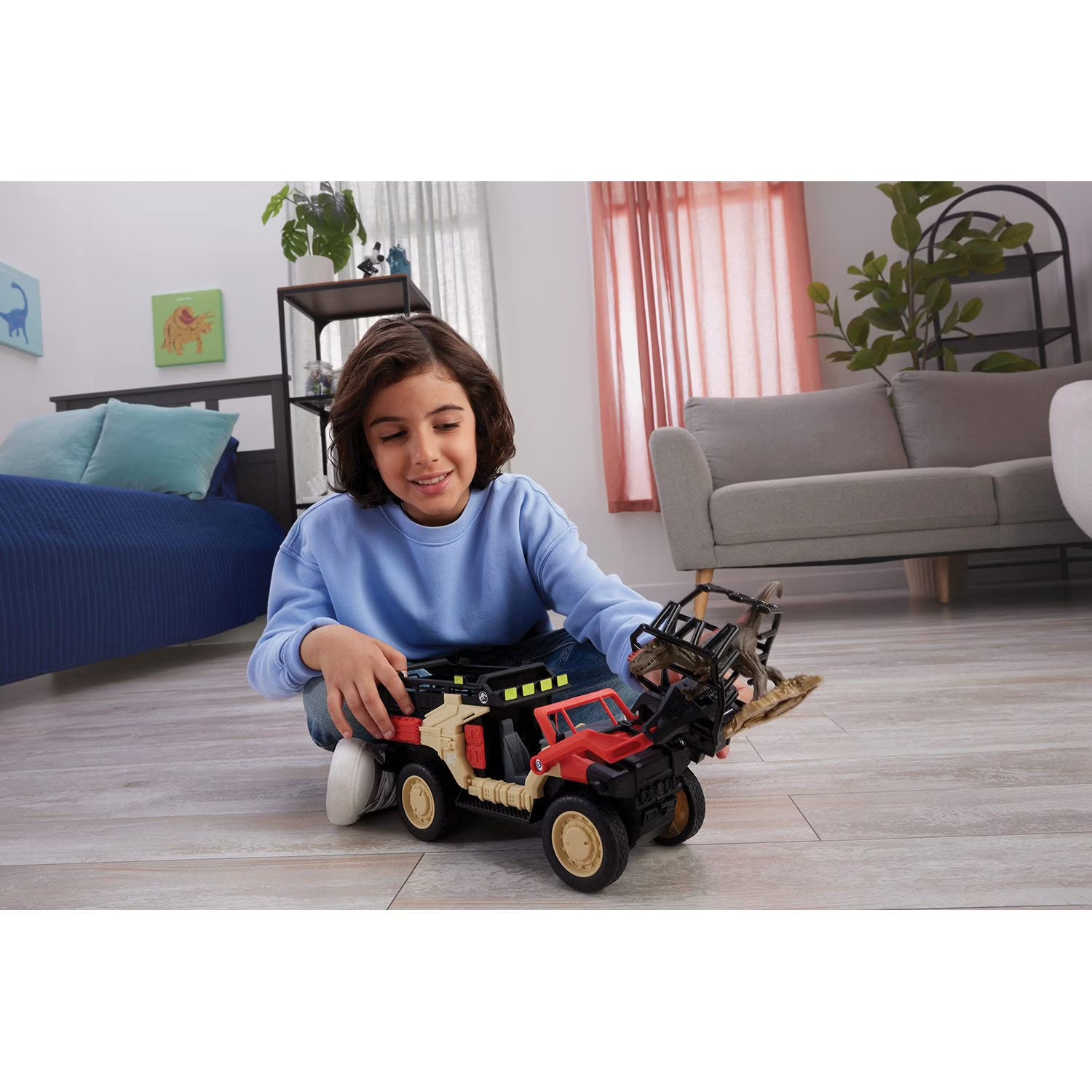- This remote-control truck features a capture claw that automatically grabs the included dinosaur figure upon approach. Lift it into and secure it in the truck's cage and head back to the lab.