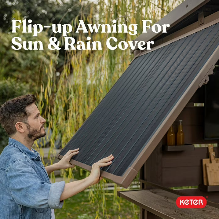 Keter 11' x 7' Signature Collection Resin Outdoor Bar Pine Gazebo with Awning