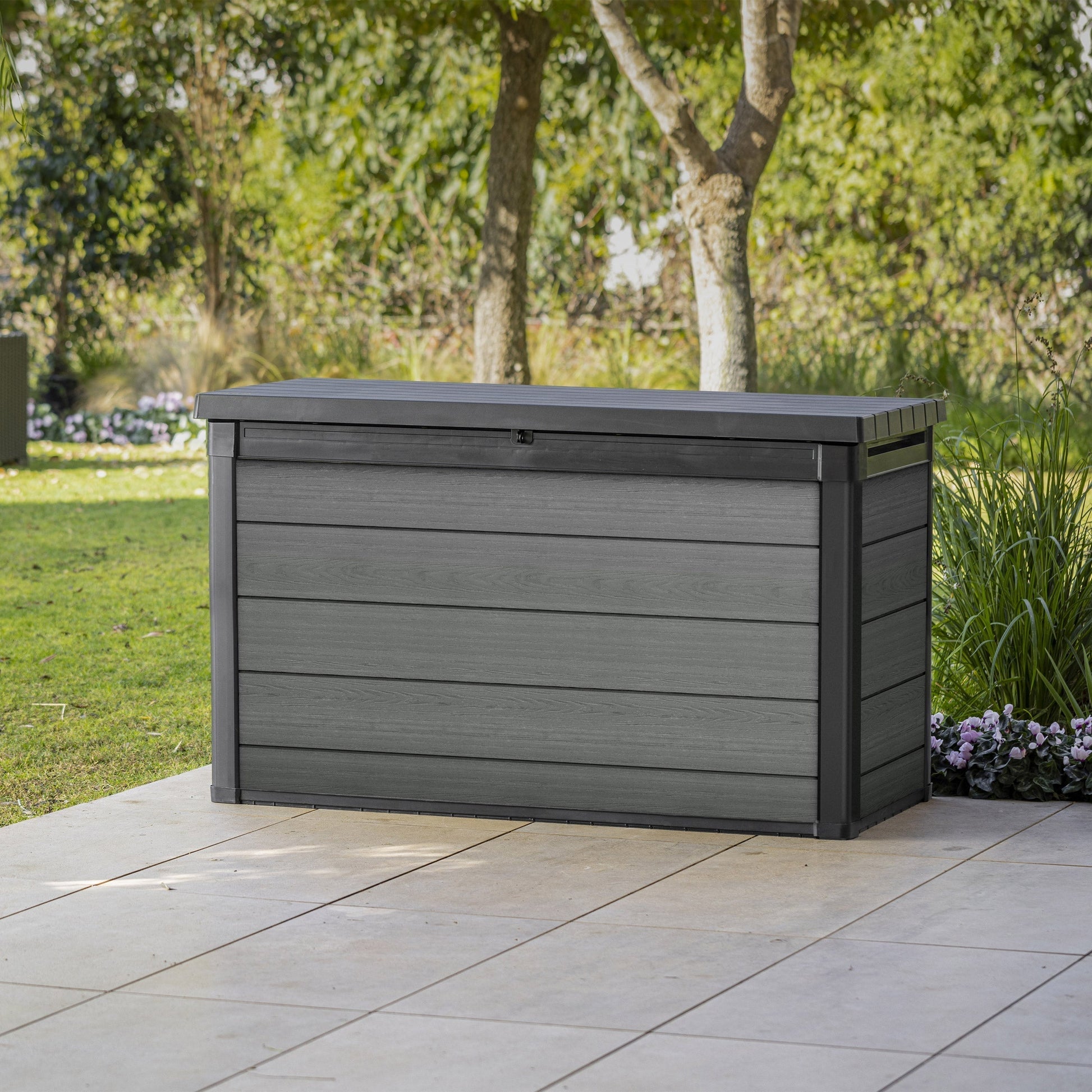 This deck box has plenty of space for all your storage needs and blends in with any decor. It has a capacity of 200 gallons and is UV and weather-resistant. It can hold up to 200 pounds and is easy to assemble.ย