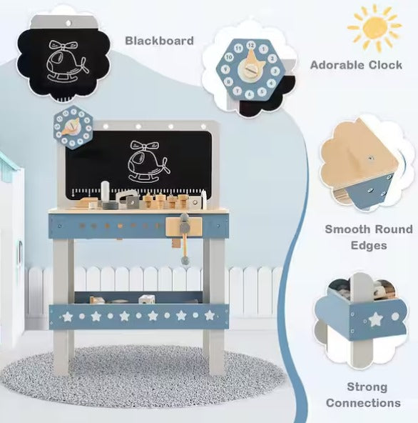 Kids Wooden Play Tool Workbench Workshop Table