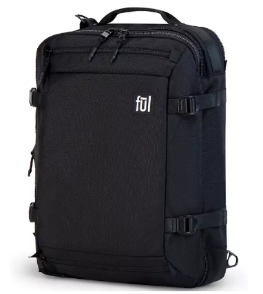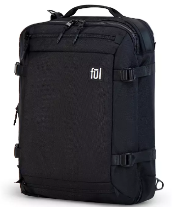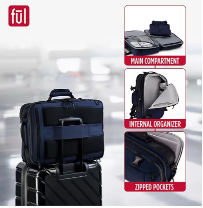 The Brookstone Hayes Laptop Backpack can be securely attached to the telescoping handle of any luggage for easy transportation.