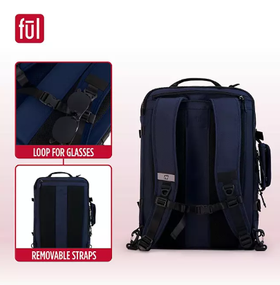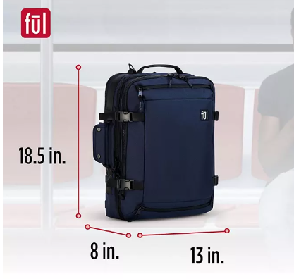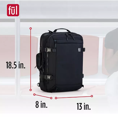 Keep all of your accessories securely packed and easily accessible while on the go with the Ridge Collection Laptop Traveling Backpack. This commuter backpack features two seperate sections which can be packed like luggage or zipped together to create one large backpack compartment. This backpack for laptop computers also features a ring for string attachments or glasses, and front, top, and bottom zip pockets for storing small accessories and essentials. This office backpack also features a quick access cell phone pocket, a right side pocket for storing a water bottle or umbrella, and a left side zip pocket to store your phone and cord pass-through for phone charging. This bagpack features ergonomic, removable and adjustable shoulder harness straps which can be adjusted from 22 to 38 inches drop, and can be zipped away for checking as luggage. This professional backpack features a sternum strap to help reduce fatigue, a rear strap for stacking the adult backpack on your suitcase, a loop for holding glasses on shoulder straps, snap hook for securing items to the bag, and a top carry handle with a 1.5 inch drop. Constructed with strong heavy duty 1680D ballistic weave fabric for long-lasting reliability, our back packs also feature soft polyester interior to protect your stored personal items. This business backpack measures 18.5 H x 13 W x 8 D in inches.