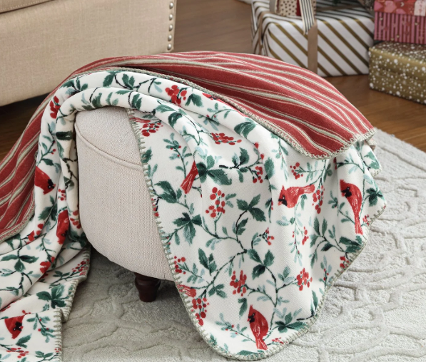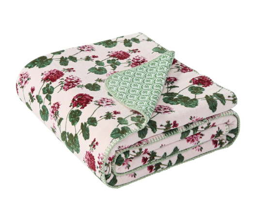 Timeless and iconic, Laura Ashley printed throws feature the beauty of English decorative design in a soft and elegant way. The Laura Ashley Coco Plush Reversible Throw collection is available in eight prints—Heled Blooms, Parterre, Marianne, Upwell Posies, Rose, Geranium, Jolly Cardinal, and Festive Tree.