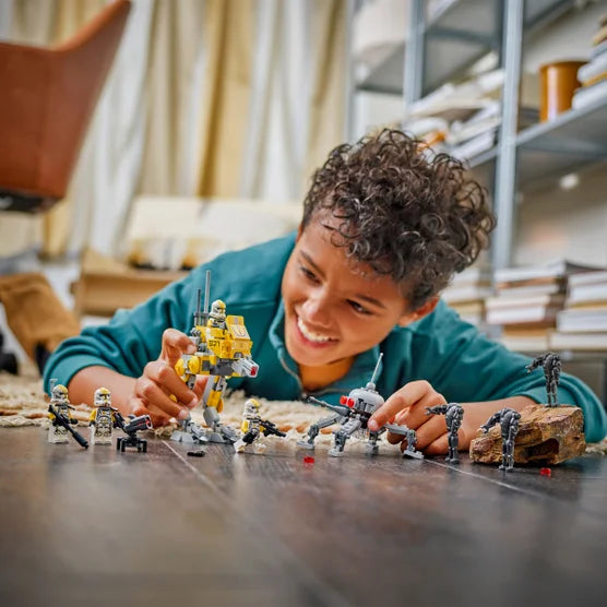 The LEGO Star Wars 327th Star Corps Clone Troopers Battle Pack (75431) building set puts kids 7 years old and up in command of Commander Bly's legendary yellow-striped Clone battalion! Young builders can assemble their own legion of Republic forces and help the Clone Troopers work together against the Super Battle Droids in exciting missions inspired by Star Wars: Revenge of the Sith. As they build, kids can discover cool tactical features, like the rugged AT-RT scout walker with posable legs and a mounted stud shooter, plus a defensive turret for strategic advantages. The droid forces respond with their own mechanical precision—a menacing Spider Droid joins the Super Battle Droids as they march in action, creating dynamic scenarios where heroes and droids face off across unique battlefields. Seven detailed characters help bring the Clone Wars to life: four Clone Trooper minifigures sporting the distinctive 327th Star Corps yellow markings, and three imposing Super Battle Droid figures ready for action. Kids will love positioning Clone Troopers behind the defensive turret, sending the AT-RT walker on exciting scouting missions, or creating brand-new adventures where teamwork and courage save the day. This Star Wars building toy makes a fantastic birthday gift for boys and girls who love Star Wars toys, creative storytelling, and action-packed pretend play adventures. Young builders can combine this set with others in the LEGO Star Wars collection (each set sold separately) to create galaxy-spanning missions where imagination leads the way! Contains 258 pieces.
