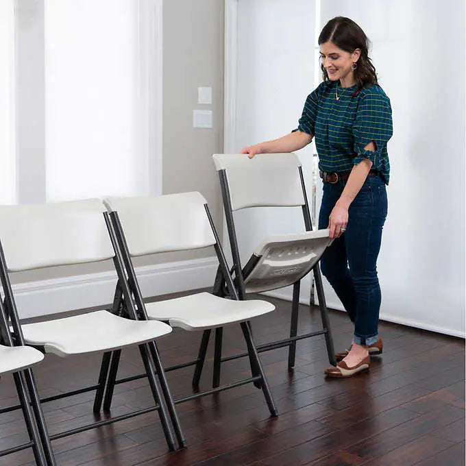 Experience enduring comfort and reliability with the Lifetime Folding Chair 4-pack, expertly crafted to meet and exceed ANSI/BIFMA standards. Each chair features high strength low alloy (HSLA) steel, delivering exceptional durability while remaining lightweight for effortless portability. Designed with a wide seat and a tall back, these chairs provide superior comfort for extended use, whether indoors or outdoors. The stain-resistant plastic seat ensures easy maintenance, keeping your chairs looking pristine through every event. With a robust weight capacity of 500 lbs, these folding chairs offer sturdy support without sacrificing convenience. Compact and practical, they fold down to a slim profile for efficient storage and transport, making them an ideal choice for any space or occasion.