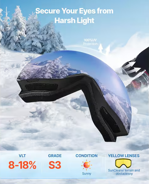 - Block strong light: these ski goggles block snow glare, cut eye strain, and keep views sharp, the snug, anti-fog fit stays clear in sun or clouds, so you ride in comfort and confidence