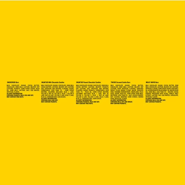 - Contains one (1) 53.66-ounce, 30-count box of full-size, individually wrapped (8) SNICKERS, (7) TWIX, (6) M&M'S Peanut Chocolate Candies, (5) M&M'S Milk Chocolate Candies and (4) MILKY WAY Chocolate Candy Bars