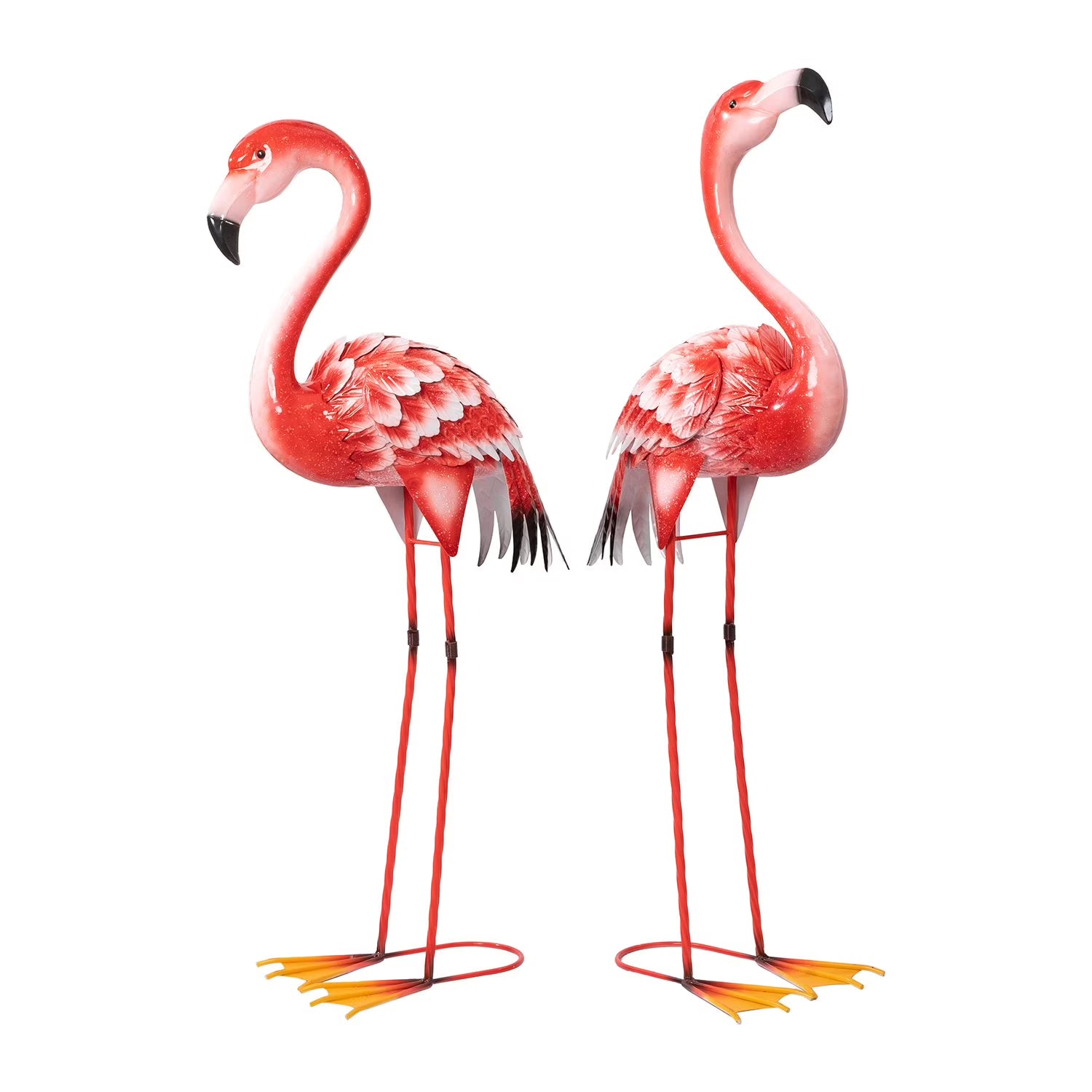 - Set of 2 metal flamingo statues