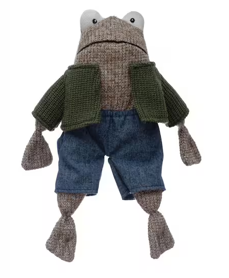 - Multi-color plush frog in shirt and shorts