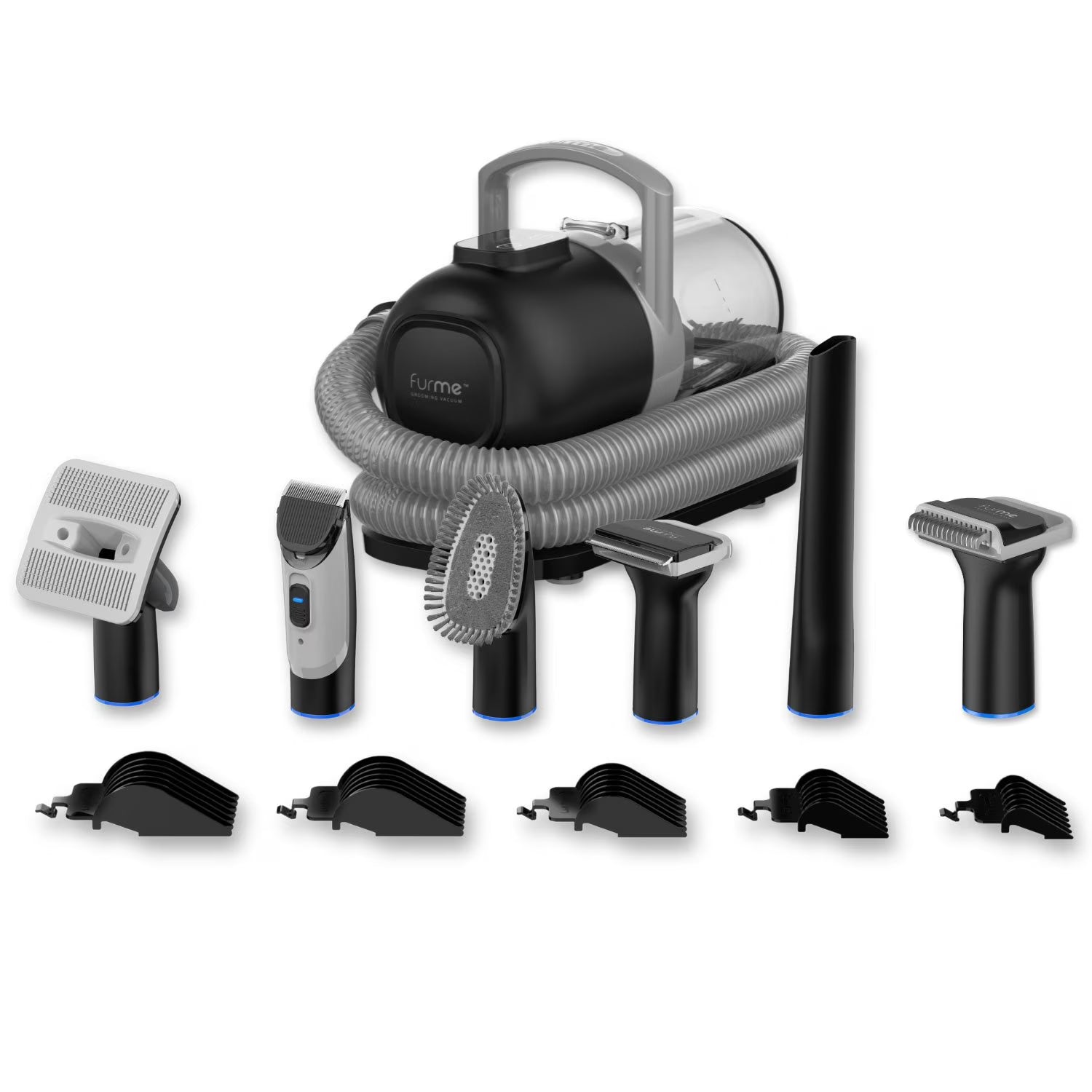 - Comprehensive pet grooming kit includes grooming brush, de-shedding brush, crevice cleaning head, cleaning brush, bonus de-matting rake, and electric clippers with 3-mm, 6-mm, 12-mm, 18-mm and 24-mm guards