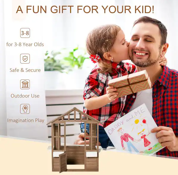 - Solid Structure: The outside playhouse is made with solid fir wood forms a strong structure for daily use. Suitable for outdoor use.