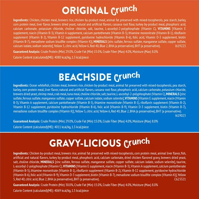 - Contains Chicken with Gravy Flavor, Original Crunch, and Beachside Crunch flavors