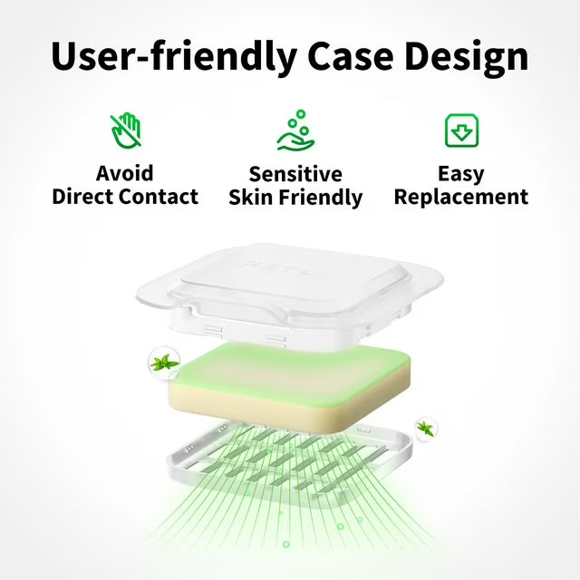 - Designed to be friendly to sensitive skin and prevents direct contact with the product, facilitating easy replacement