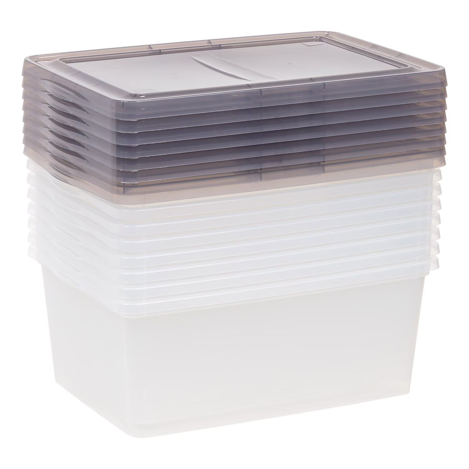 This 8-piece storage set from IRIS USA features 17-quart capacity containers with crystal-clear bodies and gray snap-locking lids designed for versatile home organization. Constructed from durable, impact-resistant polypropylene, each bin withstands frequent handling and stacking without compromising integrity. The interlocking groove system on both lid and base enables secure, space-efficient stacking while maintaining stability during transport. Dust and moisture protection keeps contents safe, whether storing seasonal items, household supplies, garage equipment, or personal belongings. The transparent design allows quick visual identification of stored materials without opening containers. When unused, the containers nest compactly for convenient storage. An ideal solution for bedrooms, closets, kitchens, garages, and any space requiring reliable, stackable organization.