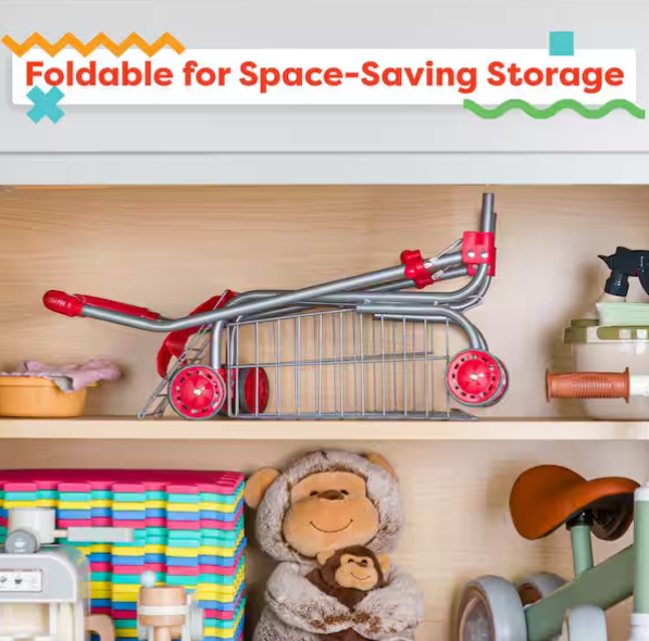 - Fold up this toy grocery cart when not in use, or transport it in your car when going to the supermarket with your child for fun pretend shopping in an actual store